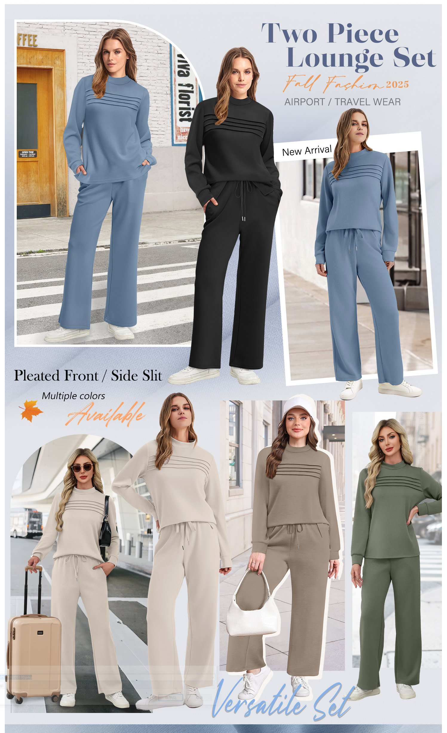 WIHOLL Two Piece Sets for Women Fall Travel Vacation Outfits Long Sleeve Lounge Sets Side Slit Wide Leg Pants S-3XL